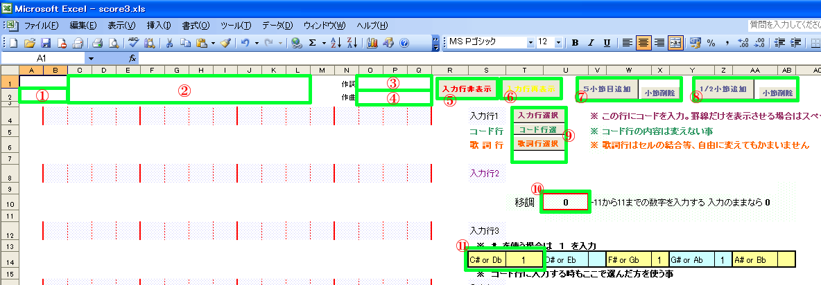 I移調するときに使います。入力行に入力したコードをどれだけ移調するかを入力します。